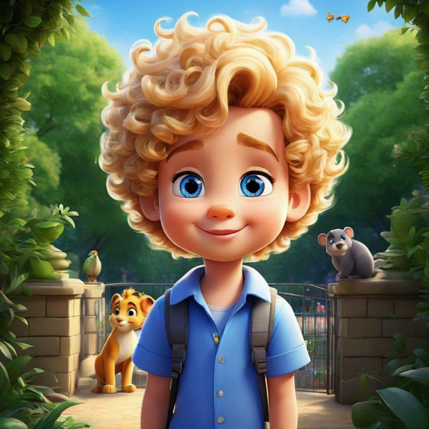 Once upon a time, in the magical kingdom of Sunshine, there lived a young prince named Luca. Prince Luca had curly golden hair, bright blue eyes, and a heart filled with curiosity and adventure. He loved exploring new places and meeting new friends. One sunny day, Prince Luca decided to visit the Royal Zoo, where he would embark on an extraordinary journey.